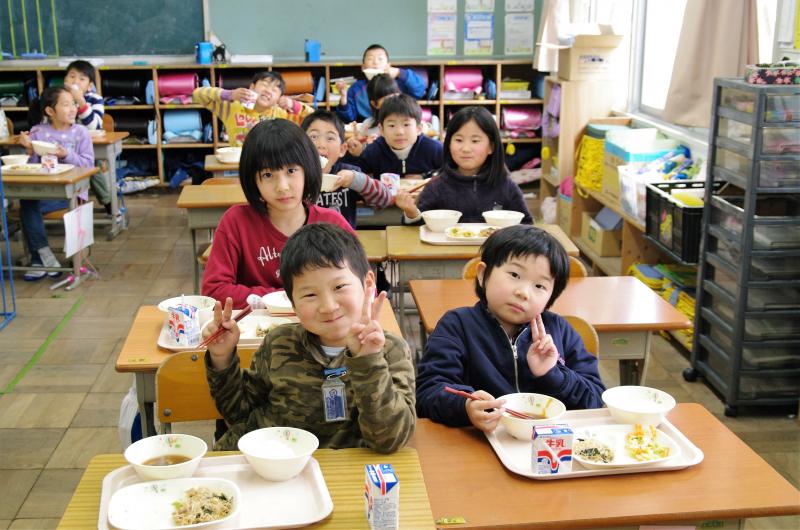 2019年3月11日 13時33分今日のメニューは、チャプチェ・にんじんとツナのサラダ・豚キムチスープ・ご飯・牛乳です。